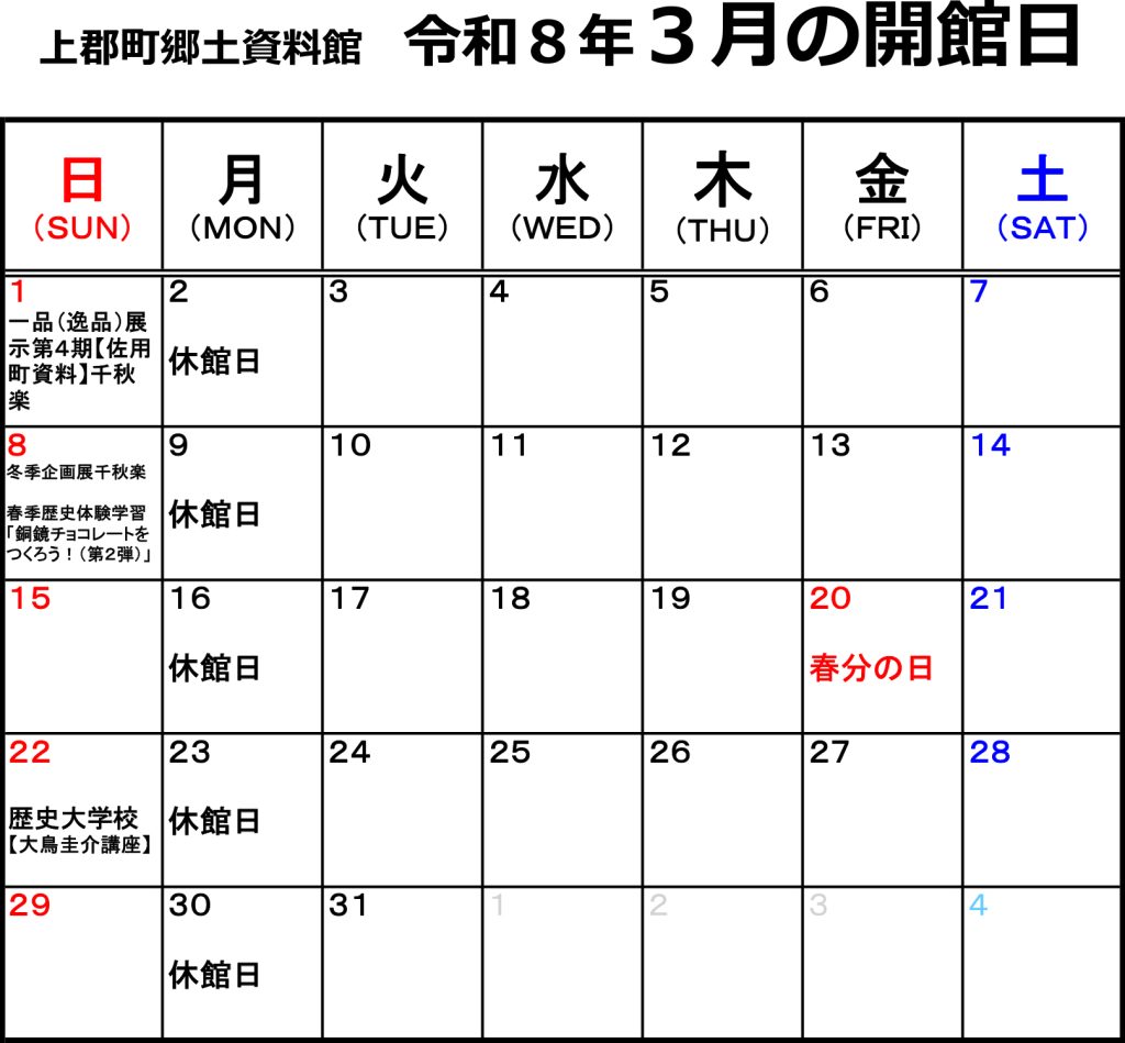 令和8年3月の開館情報です。